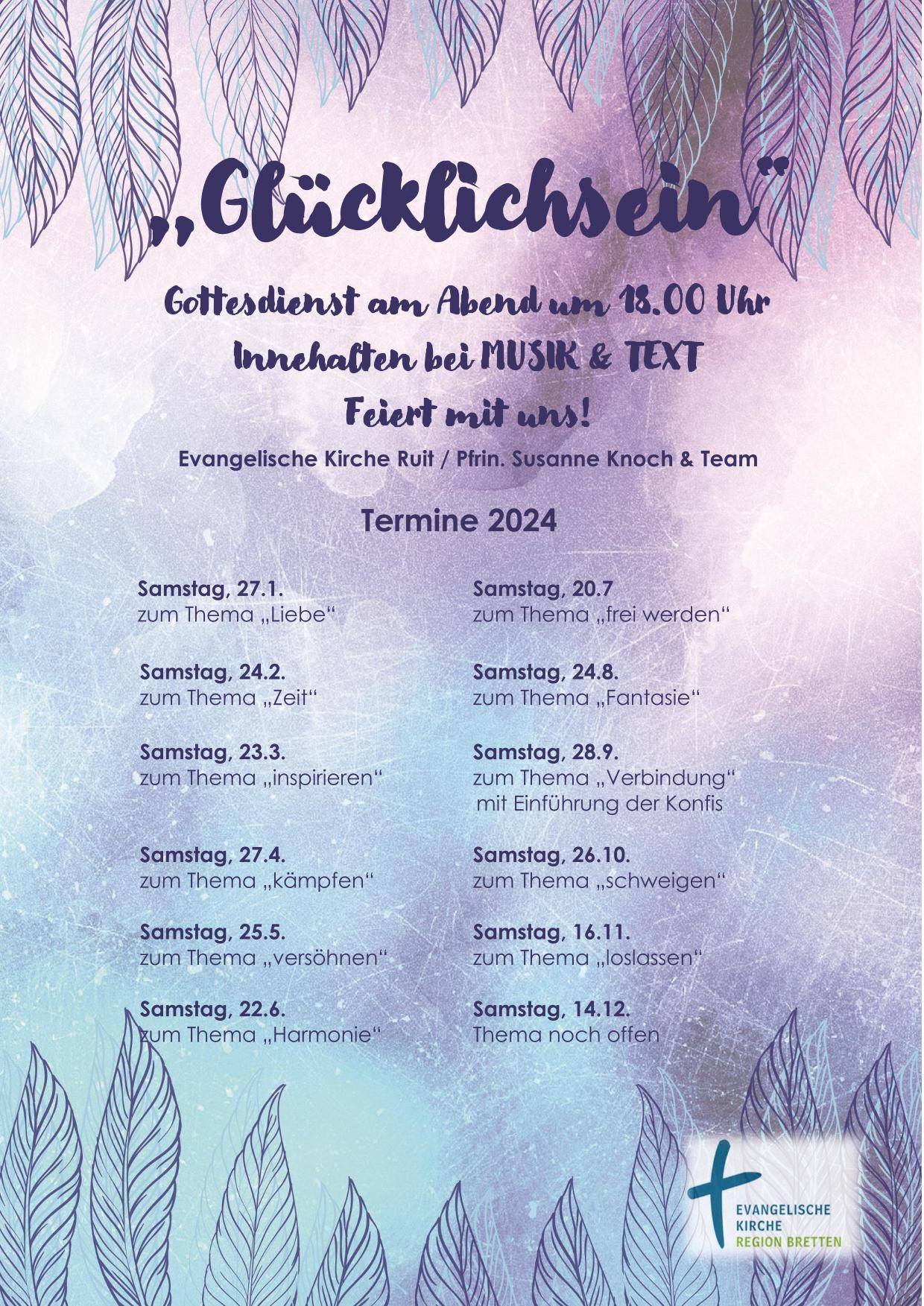 Gottesdienste am Samstag-Abend um 18.00 Uhr in Ruit