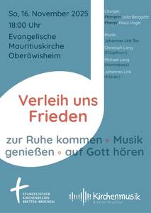 "zur Ruhe kommen - Musik genießen - auf Gott hören" - 16. November 18 Uhr, Evangelische Mauritiuskirche Oberöwisheim